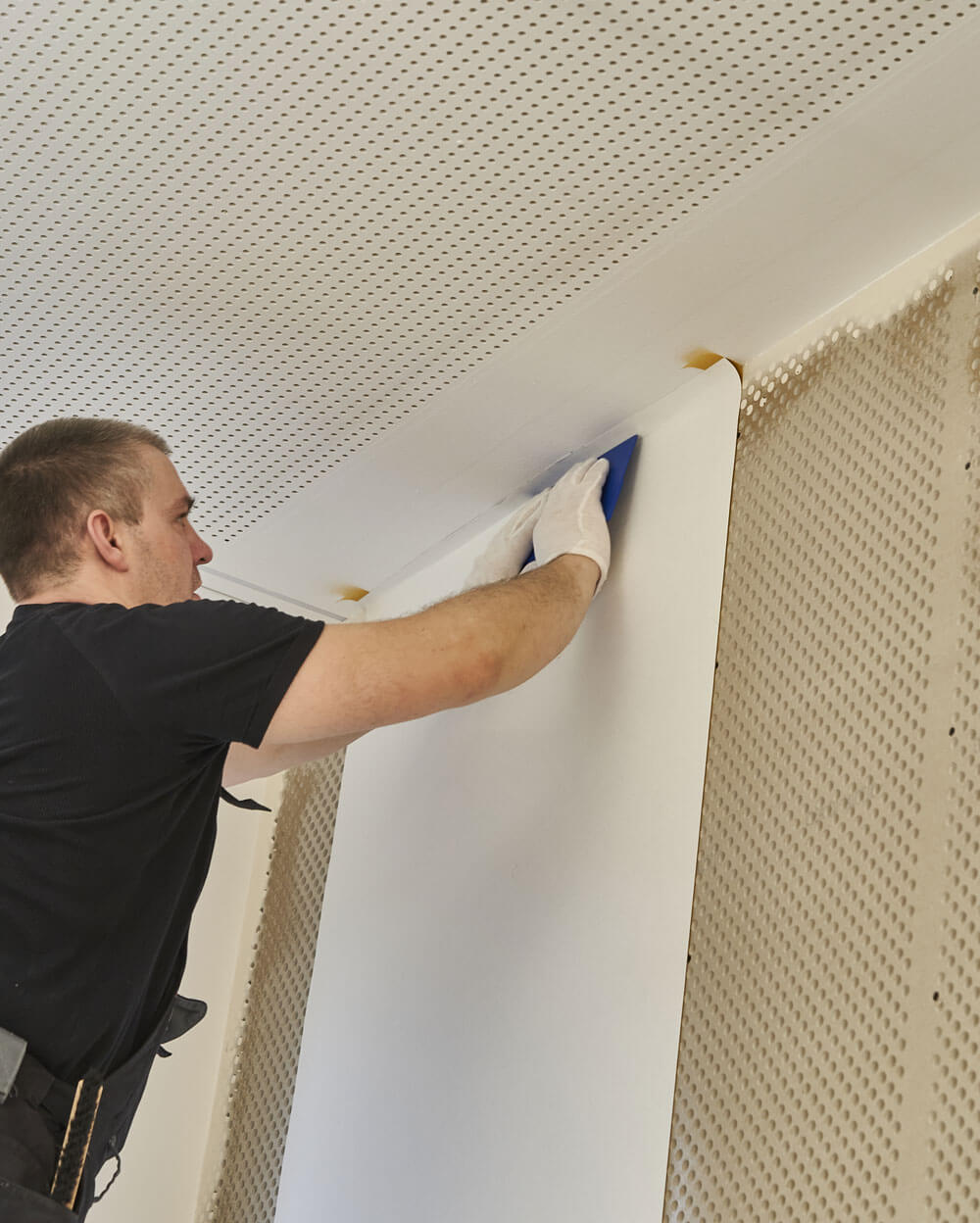 In der modernen Architektur trifft man oft auf glatte, schallharte Oberflächen. Um eine angenehme Akustik auch in solchen Räumen erreichen zu können, hat Knauf in Kooperation mit Vitrulan das Cleaneo Systexx System entwickelt welches ein glattes Deckenbild mit hochwertiger Raumakustik kombiniert. Next Finish ist für die Verarbeitung zertifiziert.
